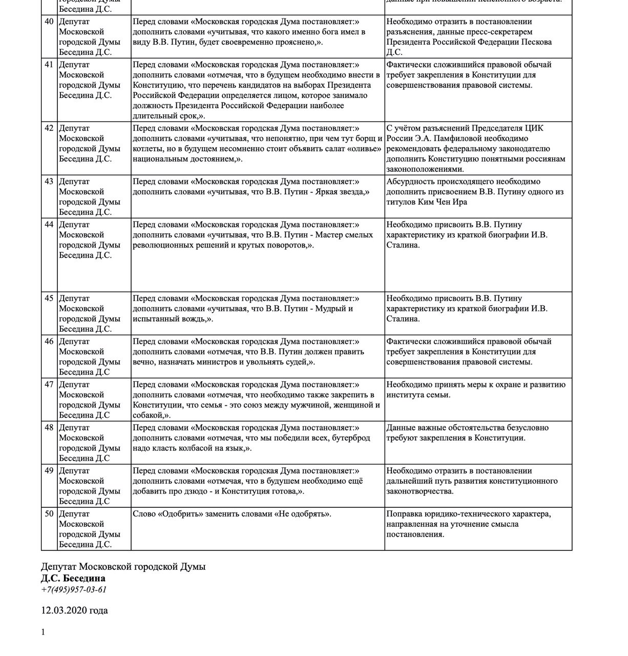 Депутат мосгордумы дарья беседина пришла на заседание в футболке с надписью «обнулись» и призвала коллег не голосовать за поправки к конституции. Депутат дарья беседина пришла в мосгордуму в футболке с надписью öбнулись и раскритиковала поправки, одна из которых предполагает обнулить президентские сроки лидера. На заседание депутат пришла в футболке с надписью «обнулись» и раскритиковала новые поправки в конституцию. Депутат мосгордумы от партии яблоко дарья беседина подвергла критике поправки к конституции. Независимый депутат дарья беседина пришла в мосгордуму в футболке с весьма провокационной надписью, которая не понравилась ее коллегам.